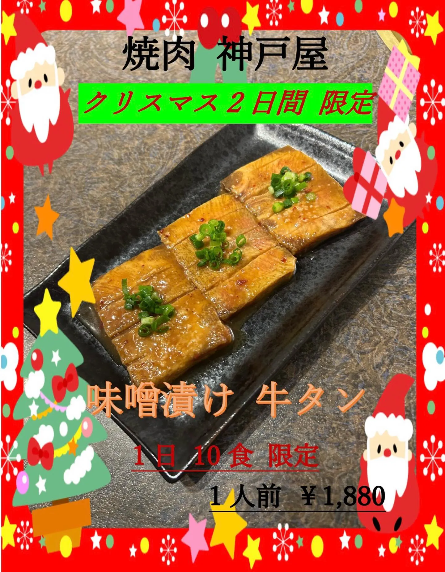 こんにちは😊焼肉 神戸屋です🐮 2025/12/24 こんにちは😊焼肉 神戸屋です🐮 クリスマス限定メニューになります! 本日より開始致しますので 神戸屋でしか味わえない商品となっております✨ 1度ご賞味下さい!! よろしくお願いいたします🙇♀️🙇